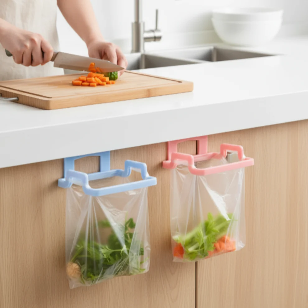 Plastic Garbage Bag & Towel Hanger – Over-Cabinet Holder (Random color-Pack of 1 – Hanger Only)